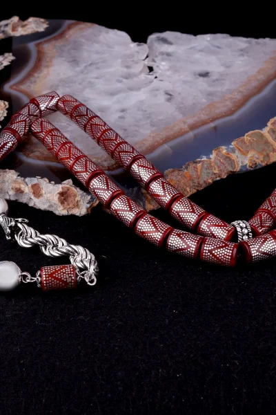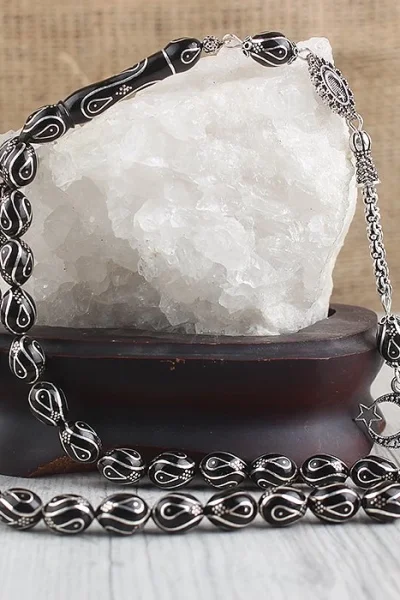 Usta El İşçilikli Gümüş İşleme Özel Üretim Erzurum Oltu Taşı Tesbih
