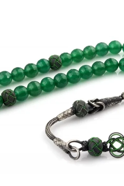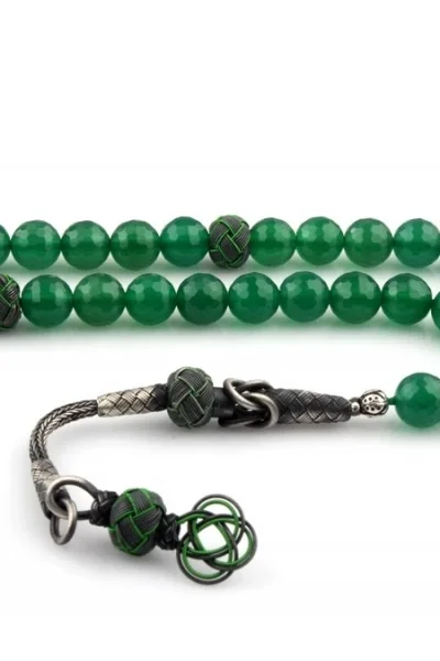 Yeşil Akik Taşı 1000 Ayar Gümüş Kazazlı Model Tesbih