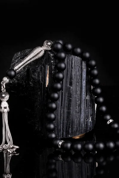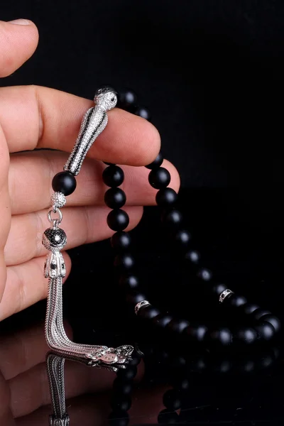 Zirkon Taşlı Gümüş Püsküllü Mat Onix Taşı Tesbih