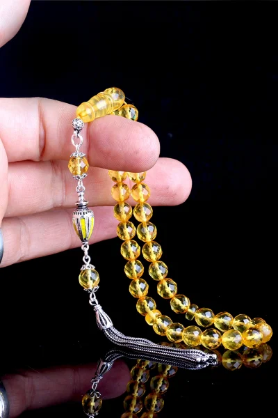 925 Ayar Gümüş Kral Püsküllü Arpa Kesim Damla Kehribar Tesbih