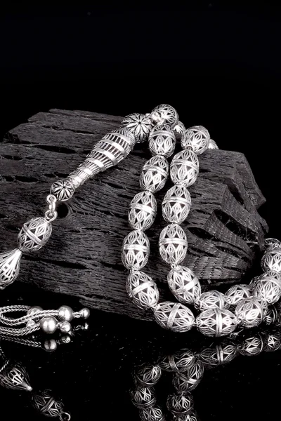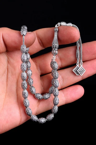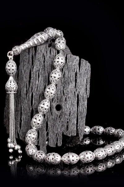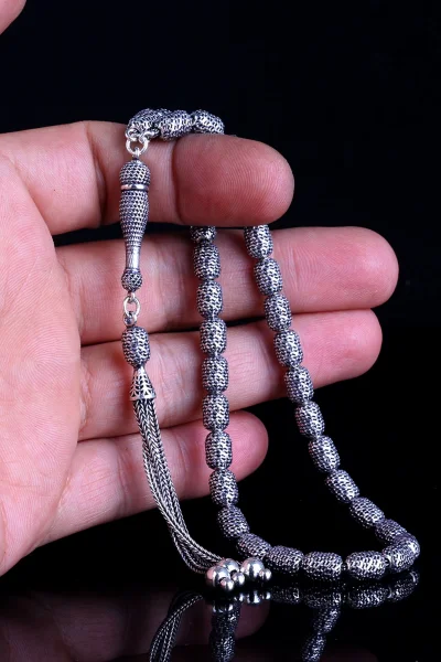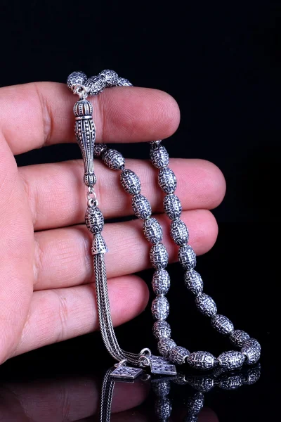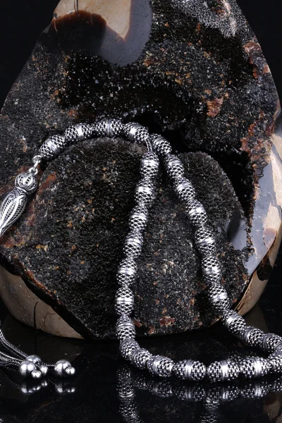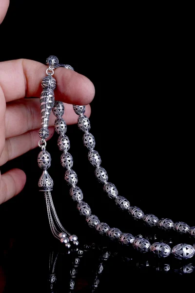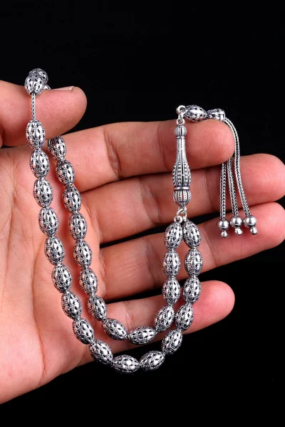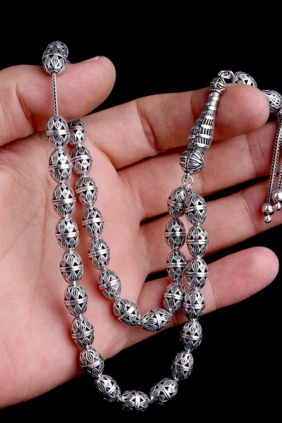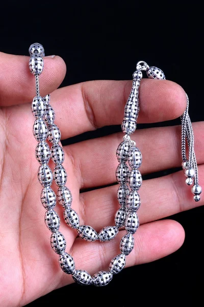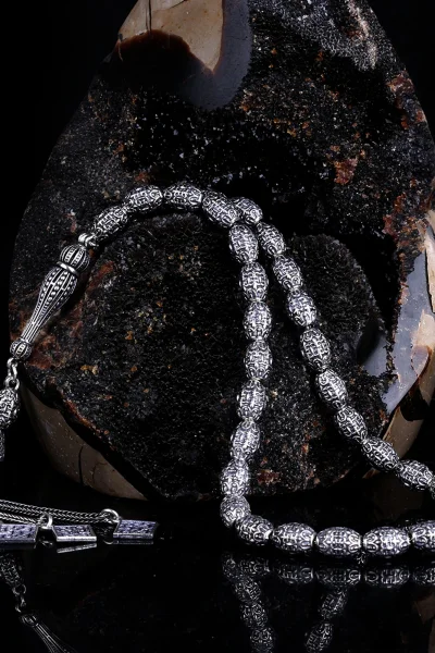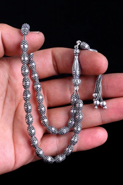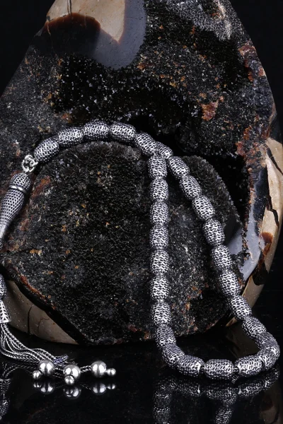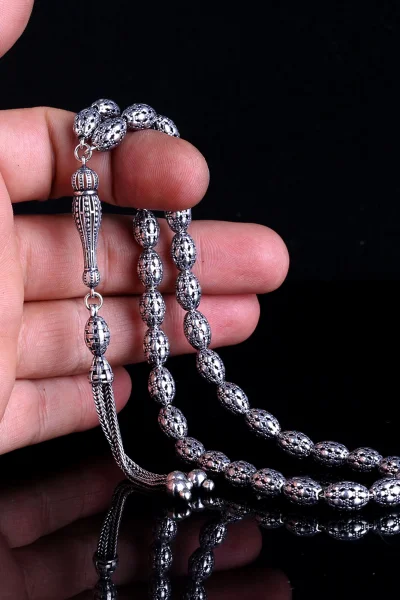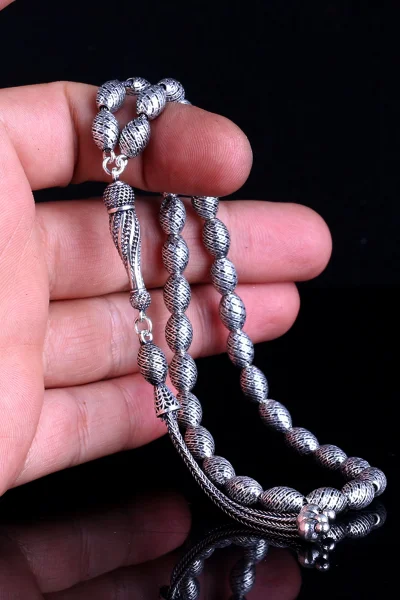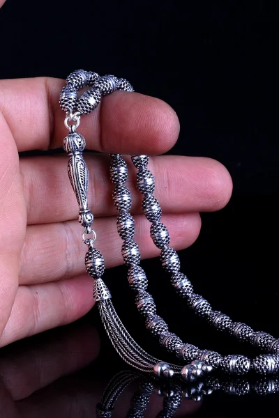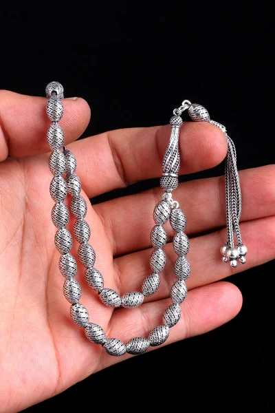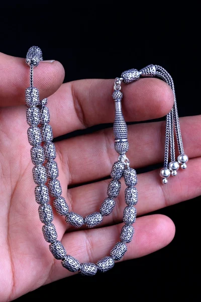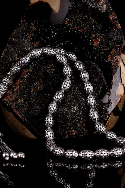 Tamamı 925 Ayar Gümüş Desen Motifli Tesbih