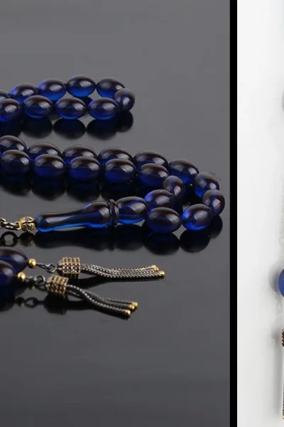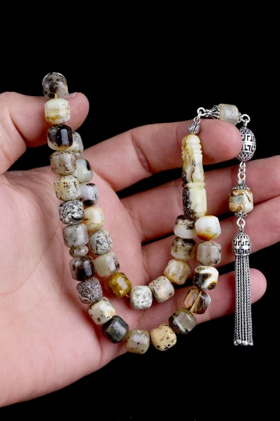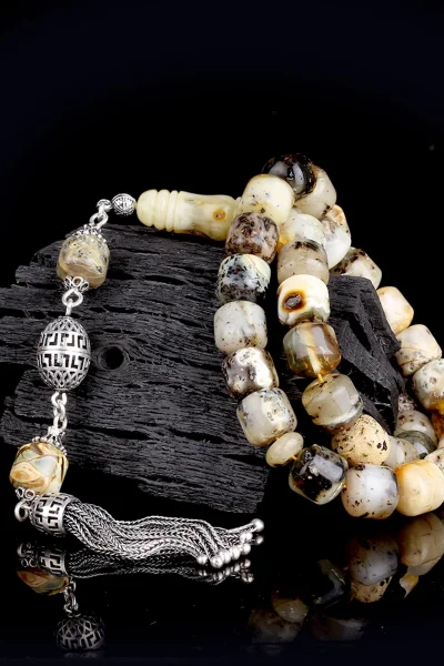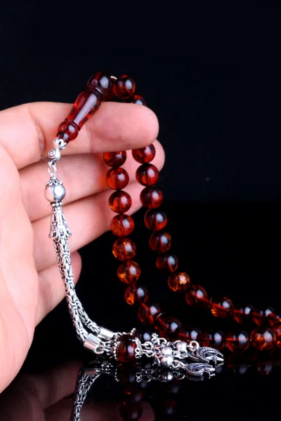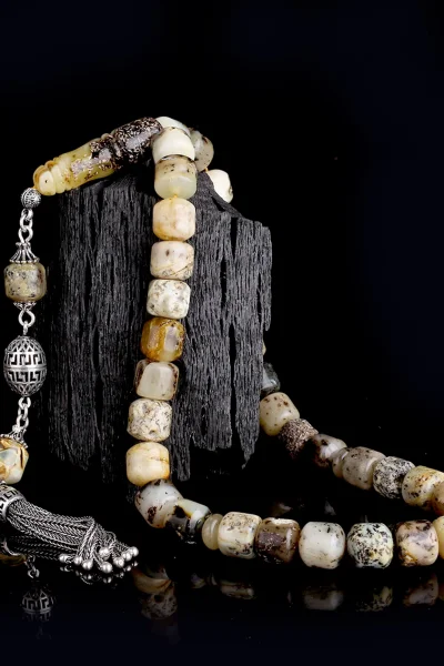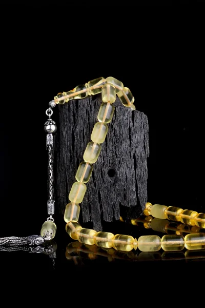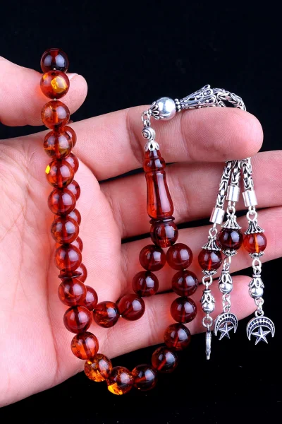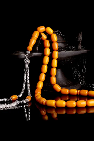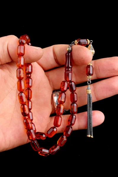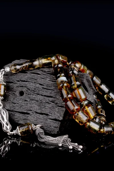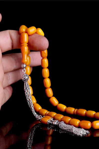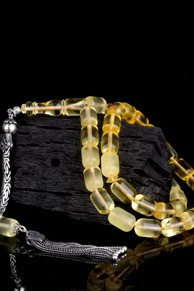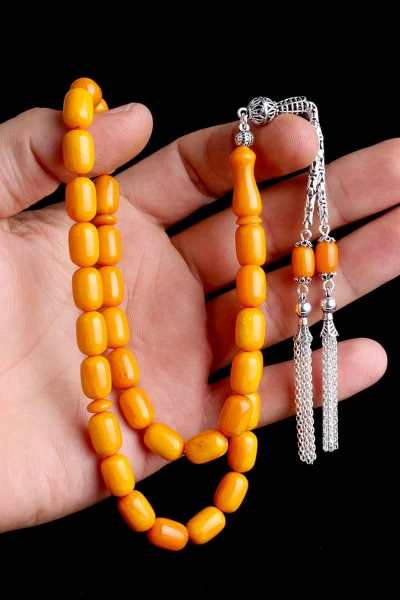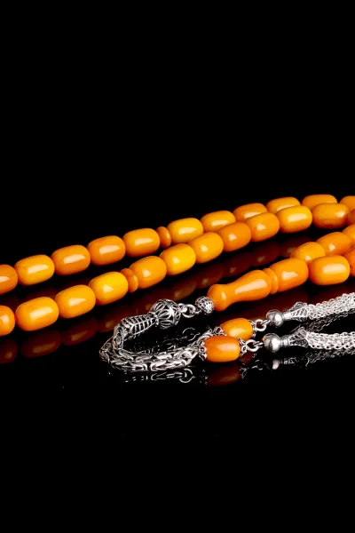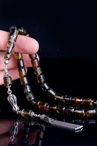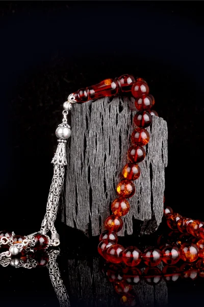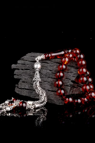 925 Ayar Gümüş Püsküllü Orjinal Damla Kehribar Tesbih