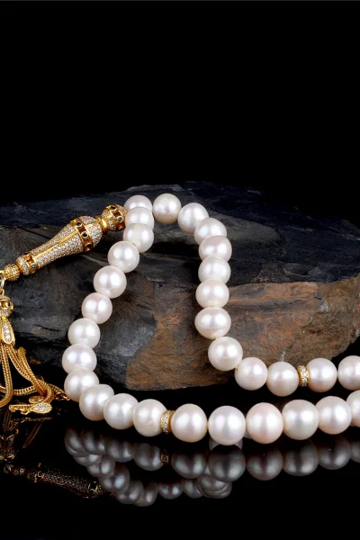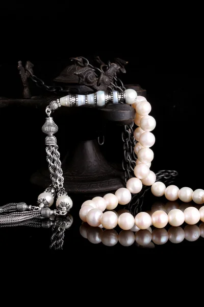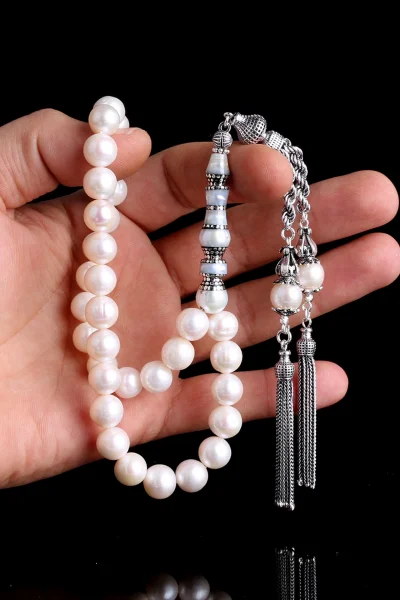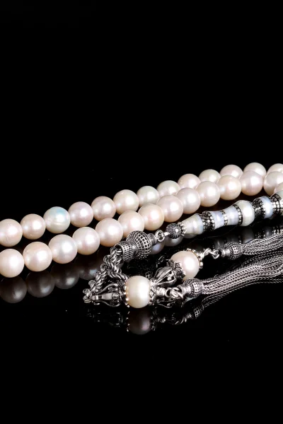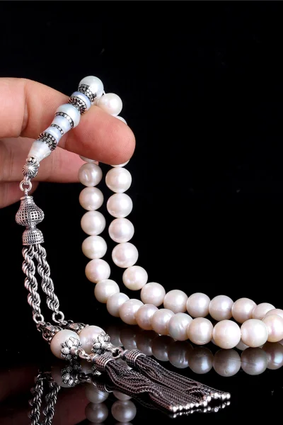 925 Ayar Gümüş Püsküllü 10 mm Nakkaş İmameli İnci Taşı Tesbih