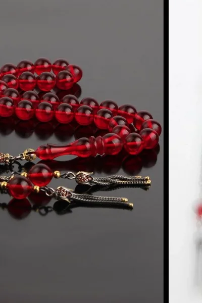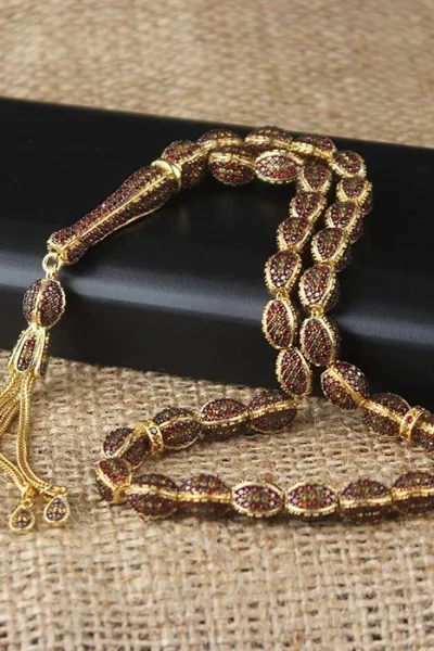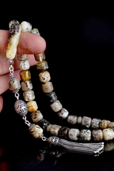 ZİRKON TAŞLI PÜSKÜLLÜ GÜMÜŞ İŞLEME ATEŞ KEHRİBAR TESBİH