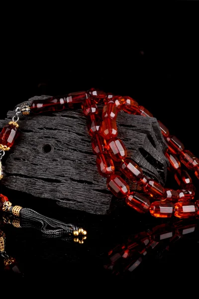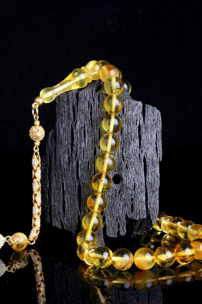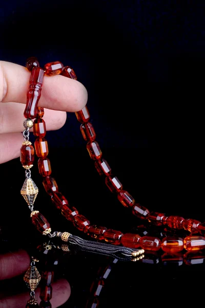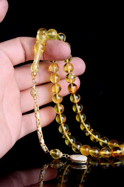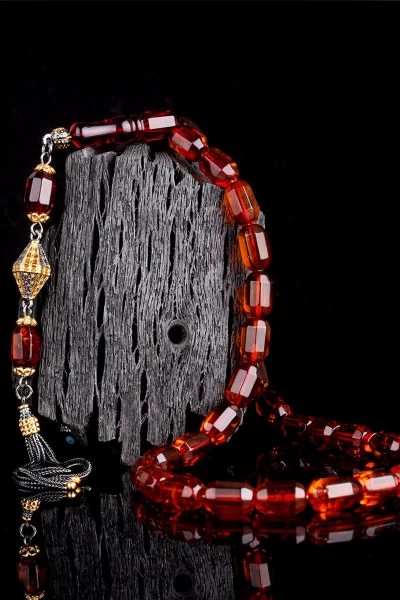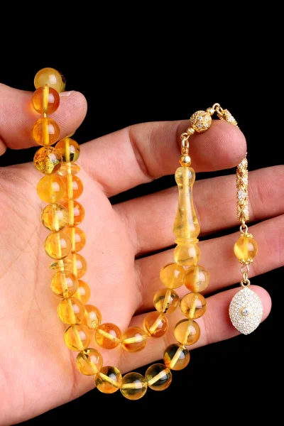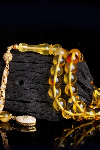 Zirkon Taşlı Rodaj Püsküllü Sıkma Kehribar Tesbih