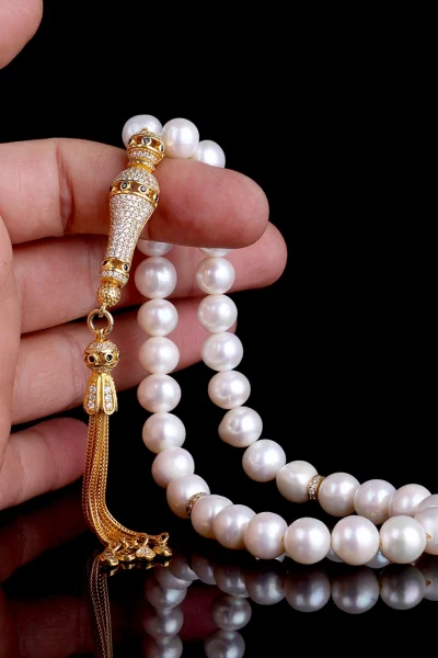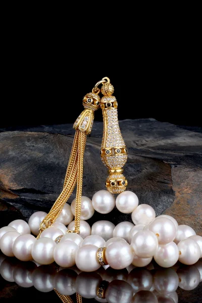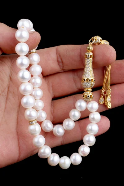 Altın Kaplama Zirkon Taşlı 10 mm İnci taşlı Tesbih