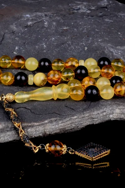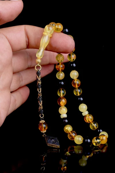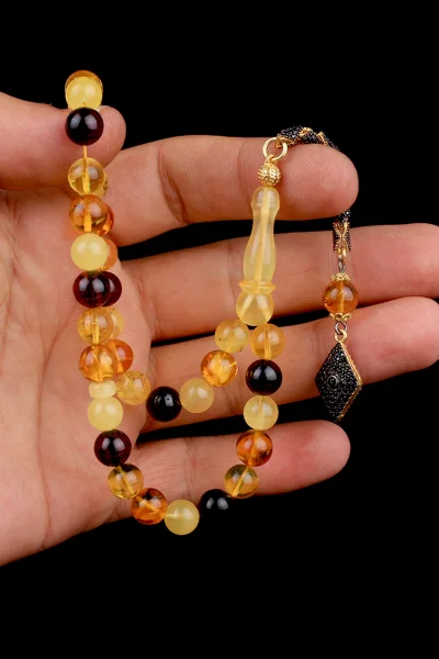 Zirkon Taşlı Püsküllü Renk Karması Doğal Damla Kehribar Tesbih