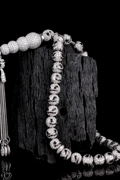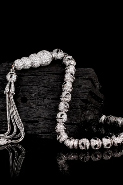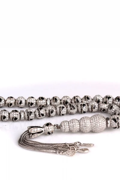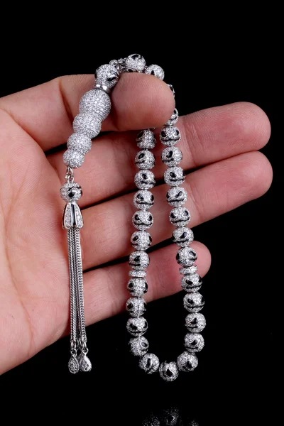 Zirkon Taşlı Tamamı 925 Ayar Gümüş Tesbih