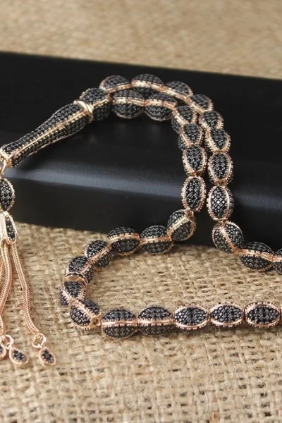 ZİRKON TAŞLI SİYAH MİNELİ 925 AYAR GÜMÜŞ TESBİH