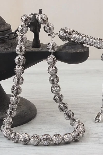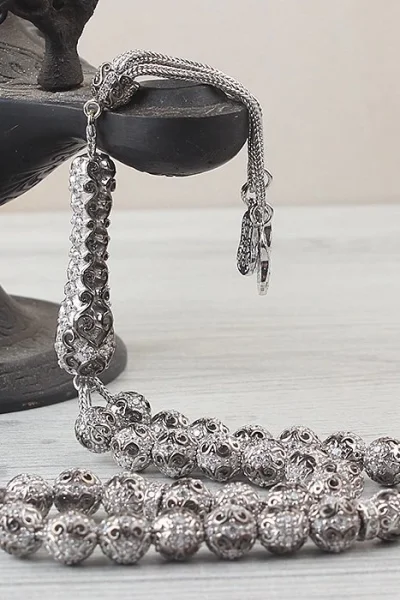 Zirkon Taşlı Telkari Model 925 Ayar Gümüş Tesbih
