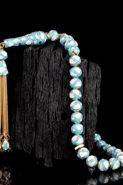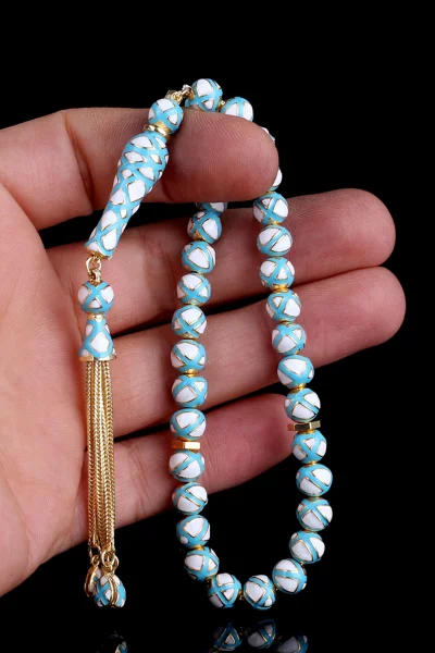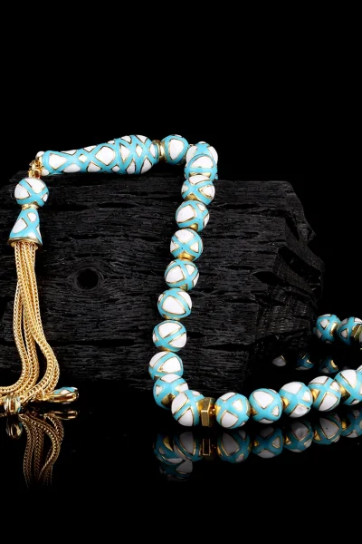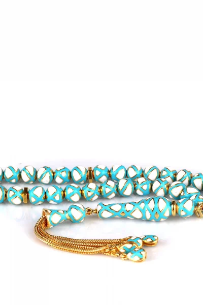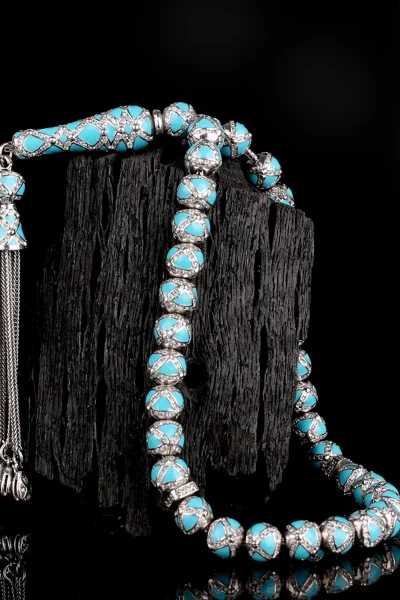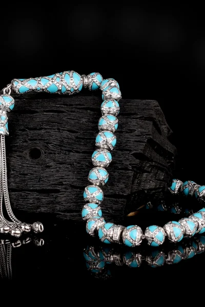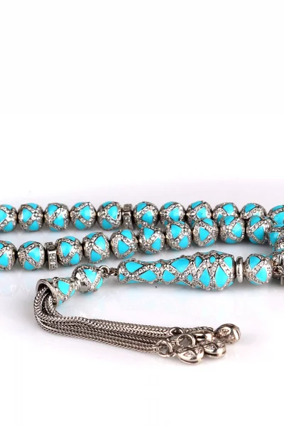 ZİRKON TAŞLI TURKUAZ RENK MİNELİ 925 AYAR GÜMÜŞ TESBİH