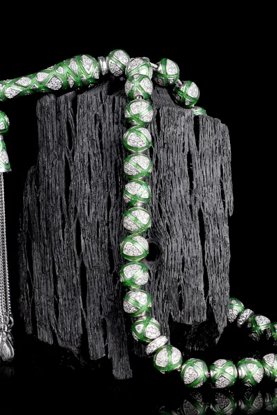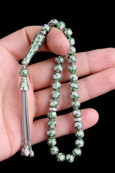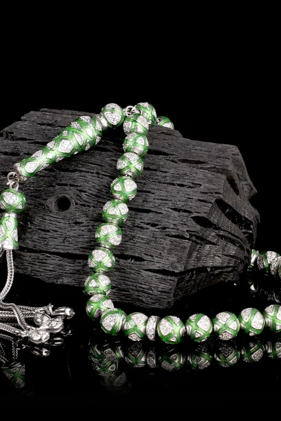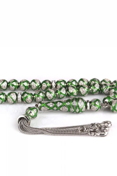 ZİRKON TAŞLI YEŞİL MİNELİ 925 AYAR GÜMÜŞ TESBİH