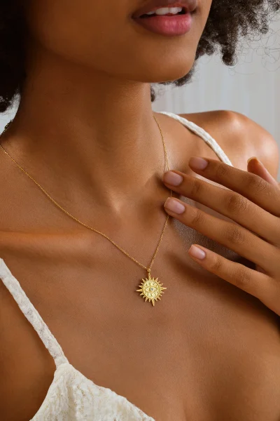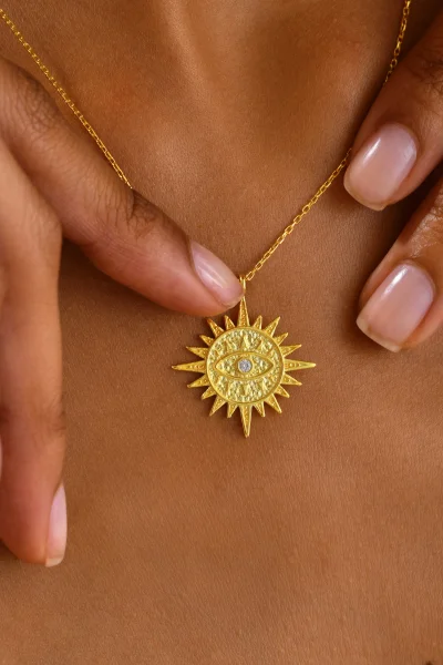 925 Ayar Gümüş Güneş ve Nazar Gözü Figürlü Kolye