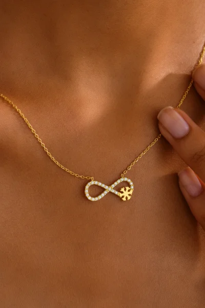 925 Ayar Gümüş Zirkon Taşlı Sonsuzluk Kar Tanesi Kolye