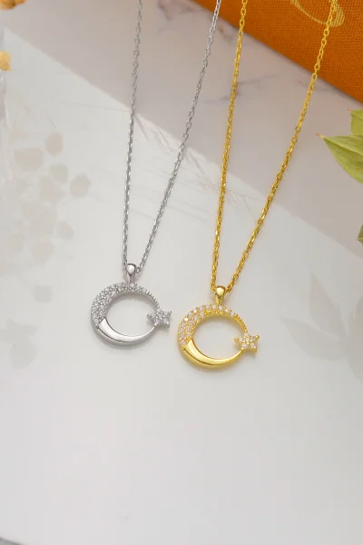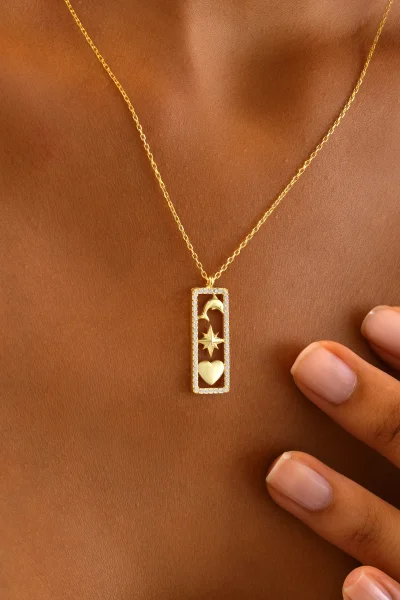 925 Ayar Gümüş Ay Yıldız ve Kalp Figürlü Kolye
