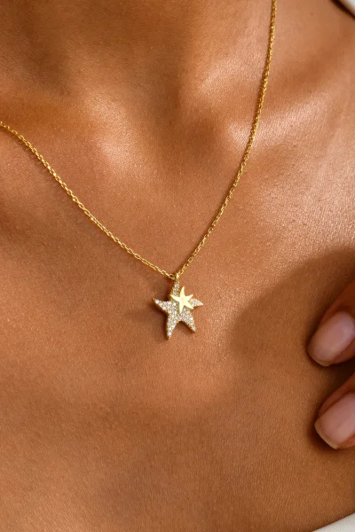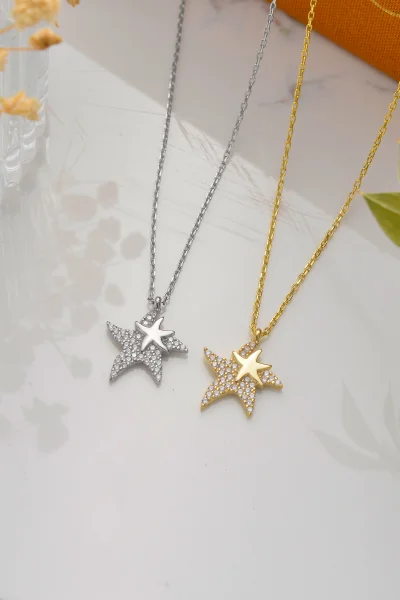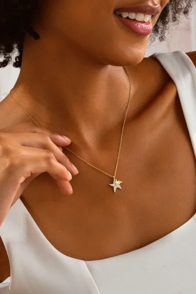925 Ayar Gümüş Çift Yıldızlı Kolye
