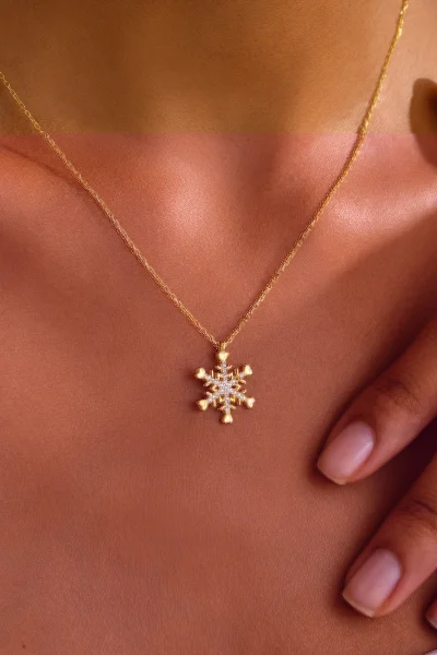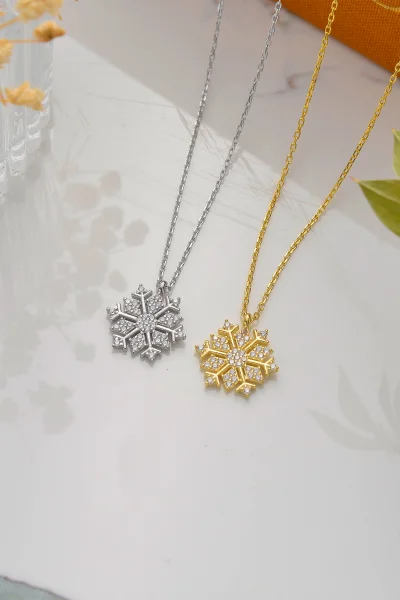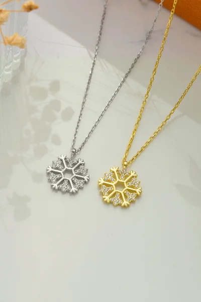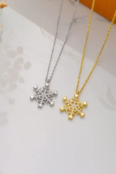 925 Ayar Gümüş Kalpli Kar Tanesi Kolye
