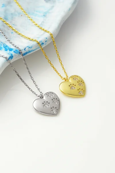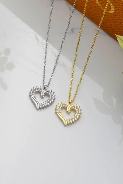 925 Ayar Gümüş Taşlı Kalp Kolye