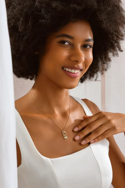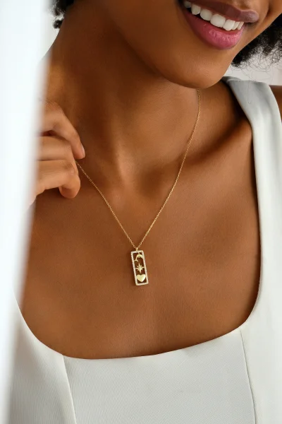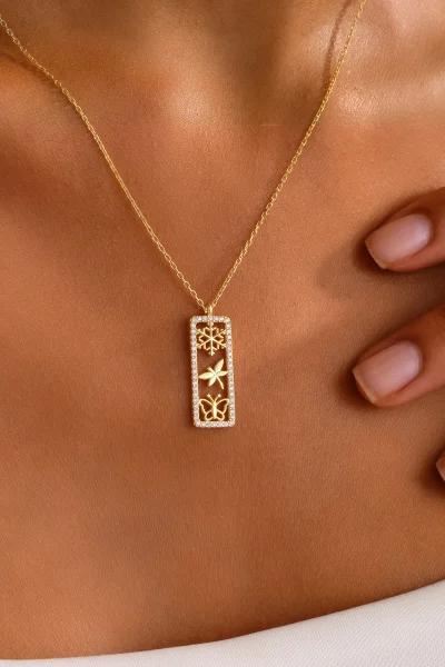 925 Ayar Gümüş Figürlü Dikdörtgen Kolye
