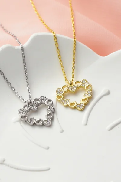 925 Ayar Gümüş Kalpler Halkası Taşlı Kolye