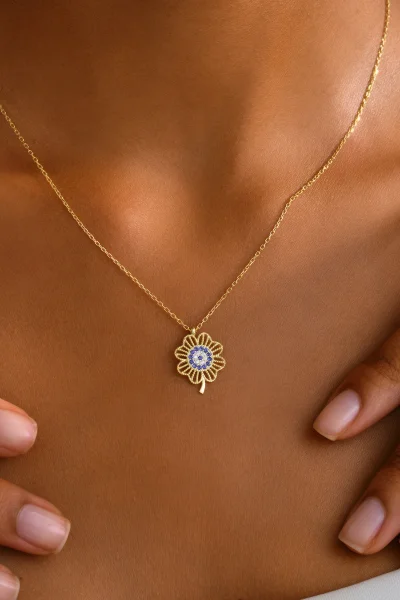 925 Ayar Gümüş Nazar Çiçeği Kolye