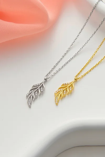 925 Ayar Gümüş Işıltılı Yaprak Kolye
