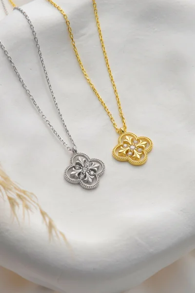 925 Ayar Gümüş Dört Yapraklı Çiçek Kolye