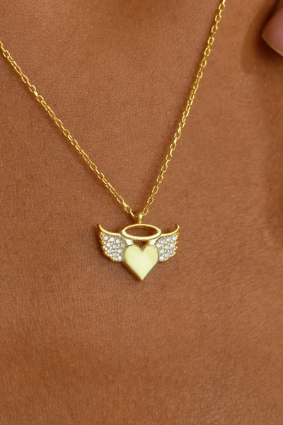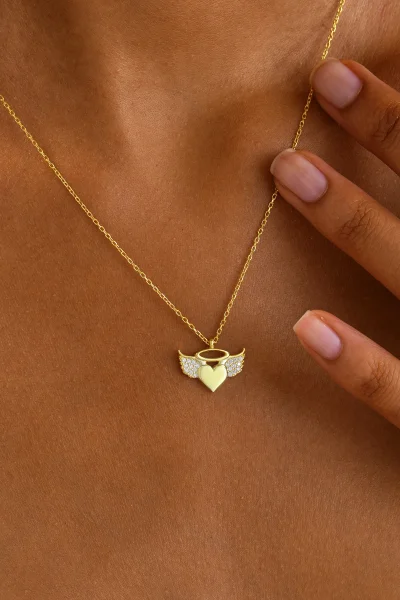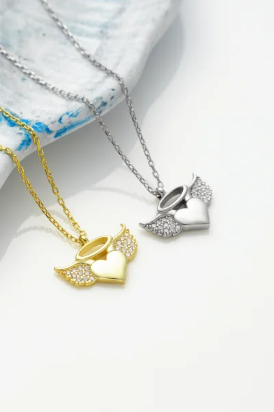 925 Ayar Gümüş Kanatlı Kalp Kolye