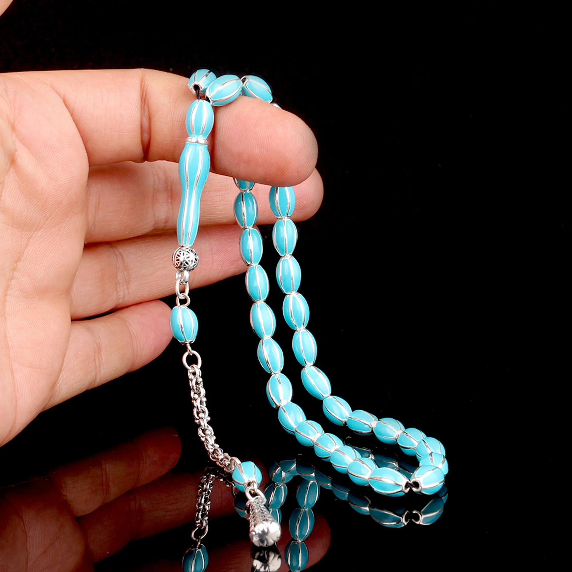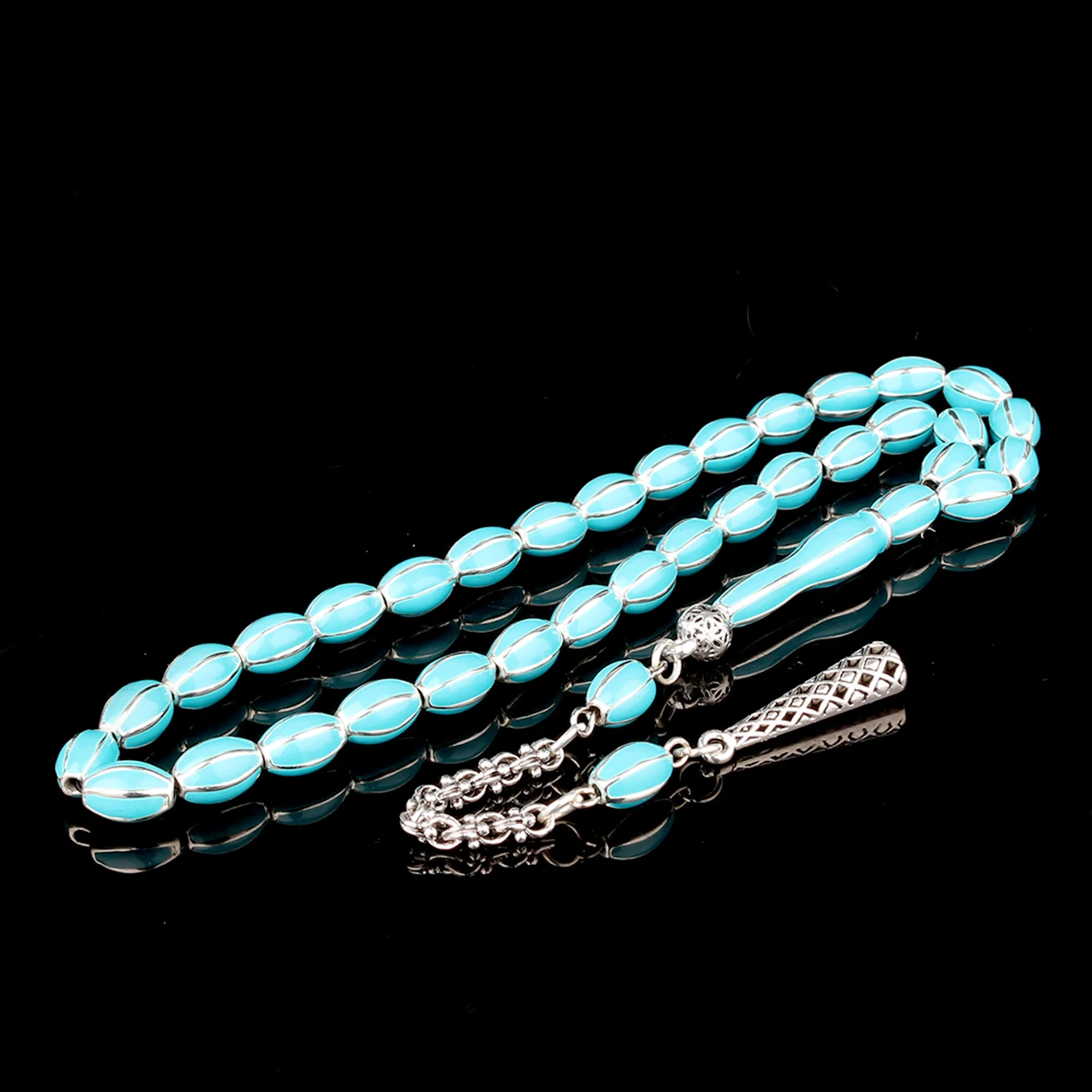 Turkuaz Renk Mine İşlemeli Metal 6 Yarma Model Tesbih Hakkında