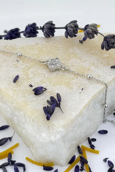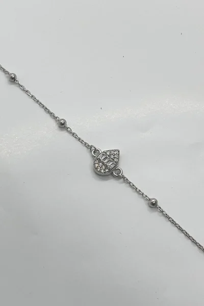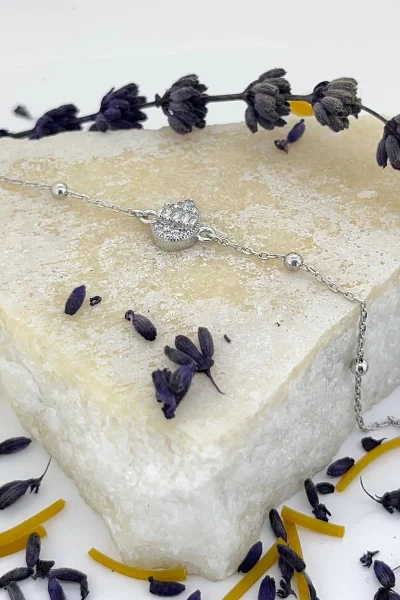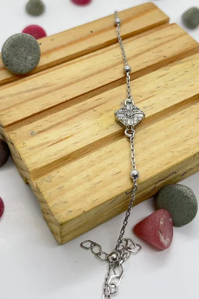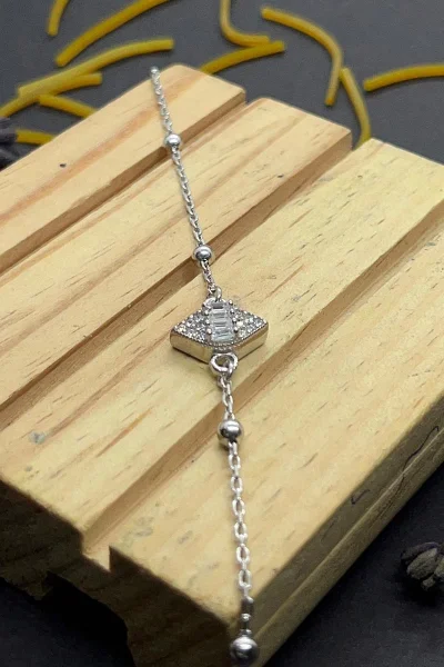 925 Ayar Gümüş Zirkon Taşı Süslemeli Top Zincirli Kadın Bileklik