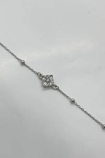 925 Ayar Gümüş Kadın Zirkon Taşı Süslemeli Top Zincirli Bileklik