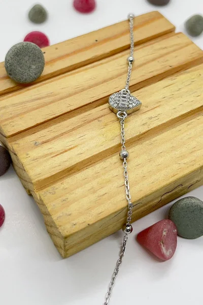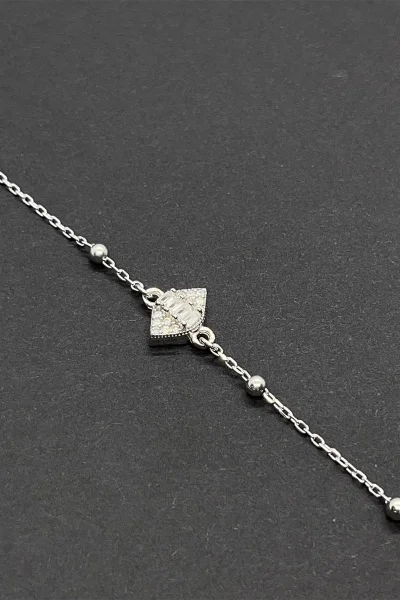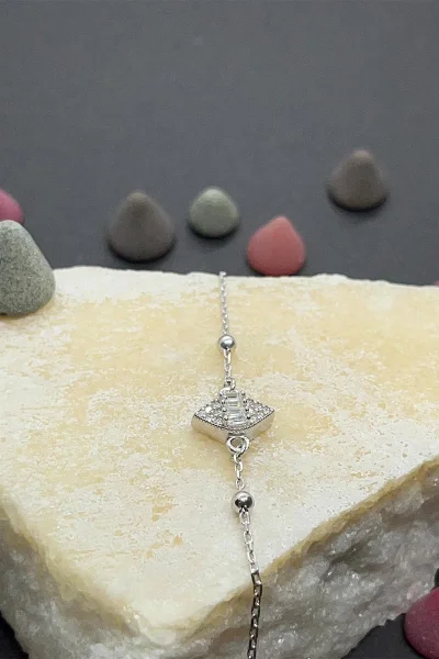 925 Ayar Gümüş Üçgen Nazar Boncuğu Modelli Zirkon Taşlı Kadın Bileklik
